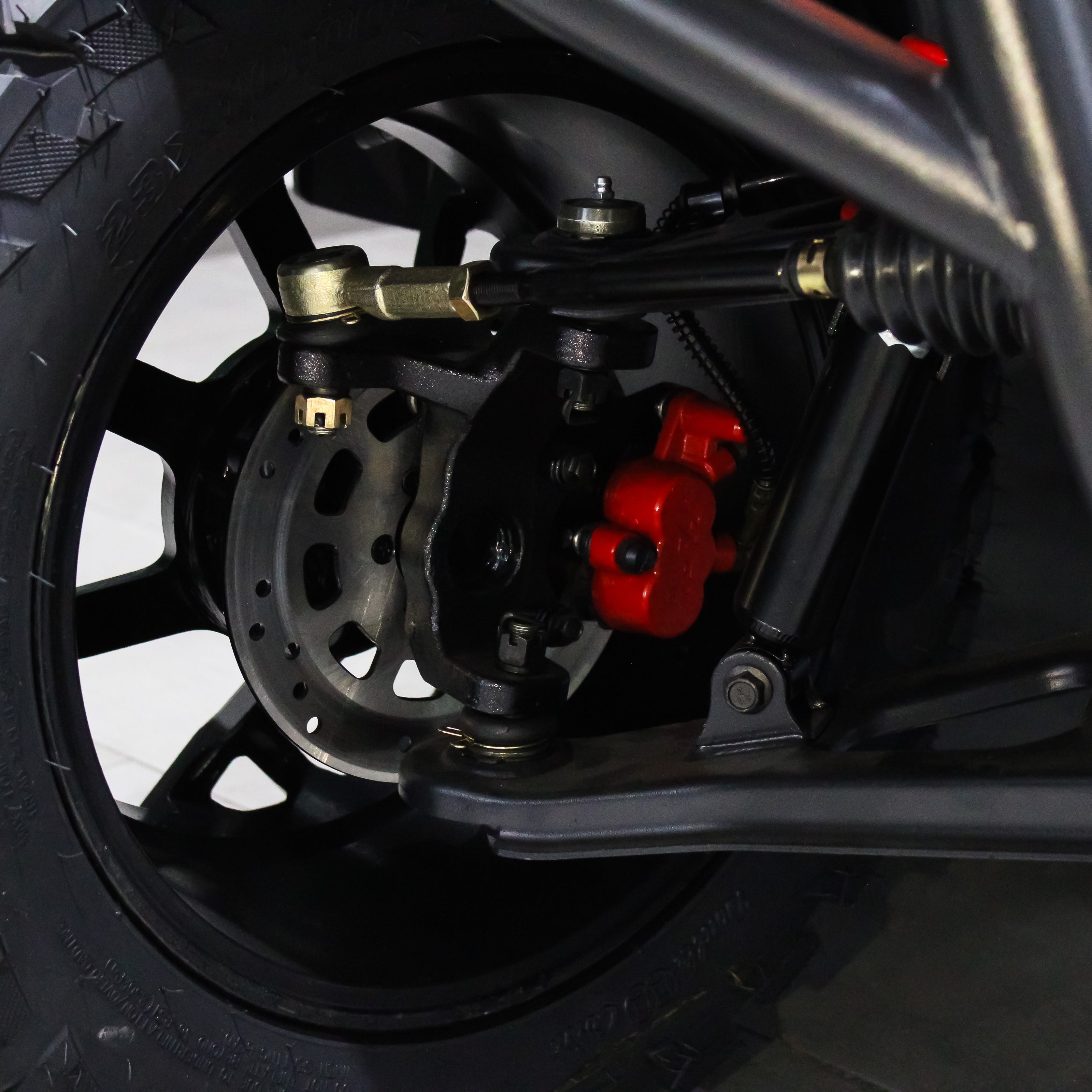 Gracias a su suspensión independiente y amortiguadores de alta resistencia, el Modelo G ofrece una conducción suave, incluso en superficies irregulares. Su chasis de aluminio con piezas moldeadas por inyección y llantas todo terreno de 12 pulgadas le brindan durabilidad y adaptabilidad para múltiples entornos.