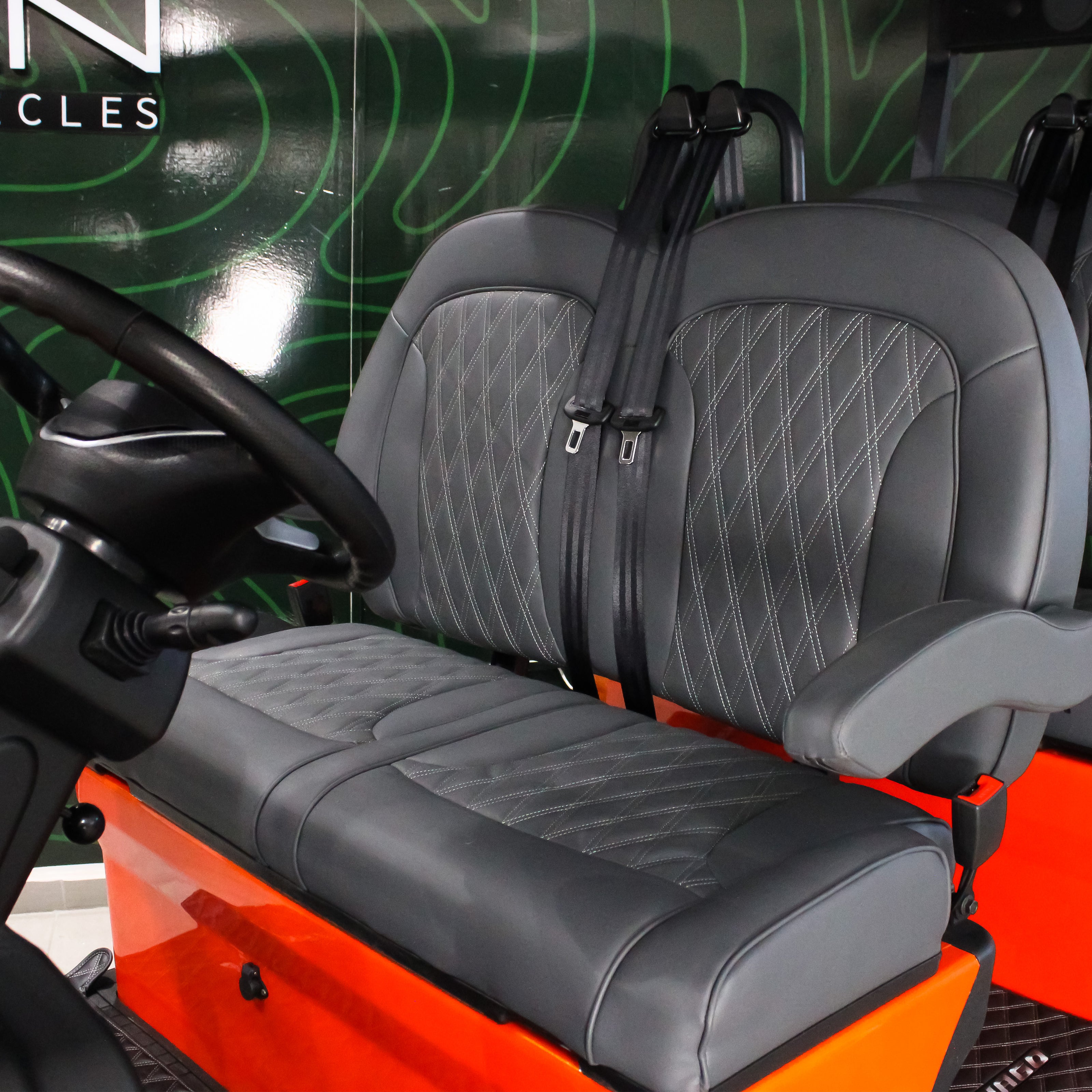 En su interior, el Modelo G destaca por su pantalla LCD de 10.1”, cámara de reversa, puertos USB y soundbar Bluetooth, ofreciendo una experiencia de manejo moderna y conectada. Los asientos tapizados en cuero con reposabrazos abatibles elevan el confort para el conductor y los pasajeros en cada recorrido.